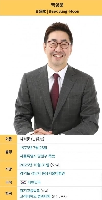 「放送パネル活動」ペク・ソンムン弁護士が癌闘病の末死去…享年52歳
