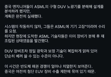 中国がASML露光装置を分解・破損