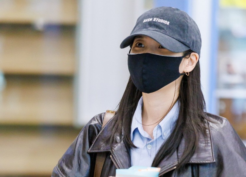 足を組むピンクの靴、IU