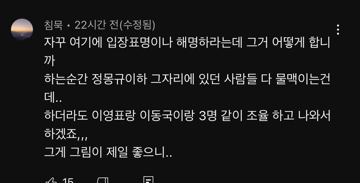 チョ·ウォンヒの入場表明前、チョ·ウォンヒのYouTubeに上がってきたコメント